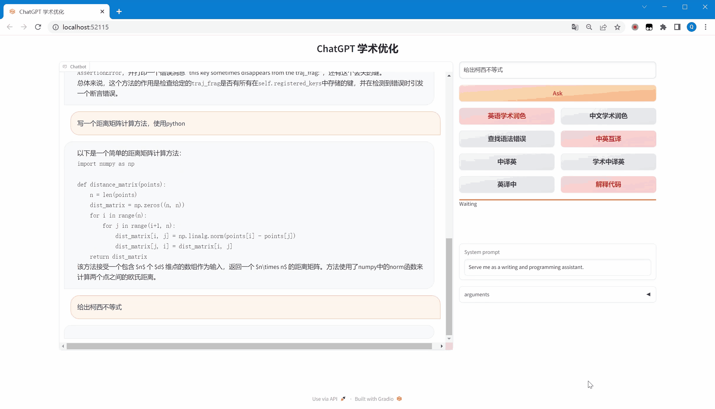 # 借鉴项目1借鉴了ChuanhuChatGPT中读取OpenAI json的方法、记录历史问询记录的方法以及gradio queue的使用技巧